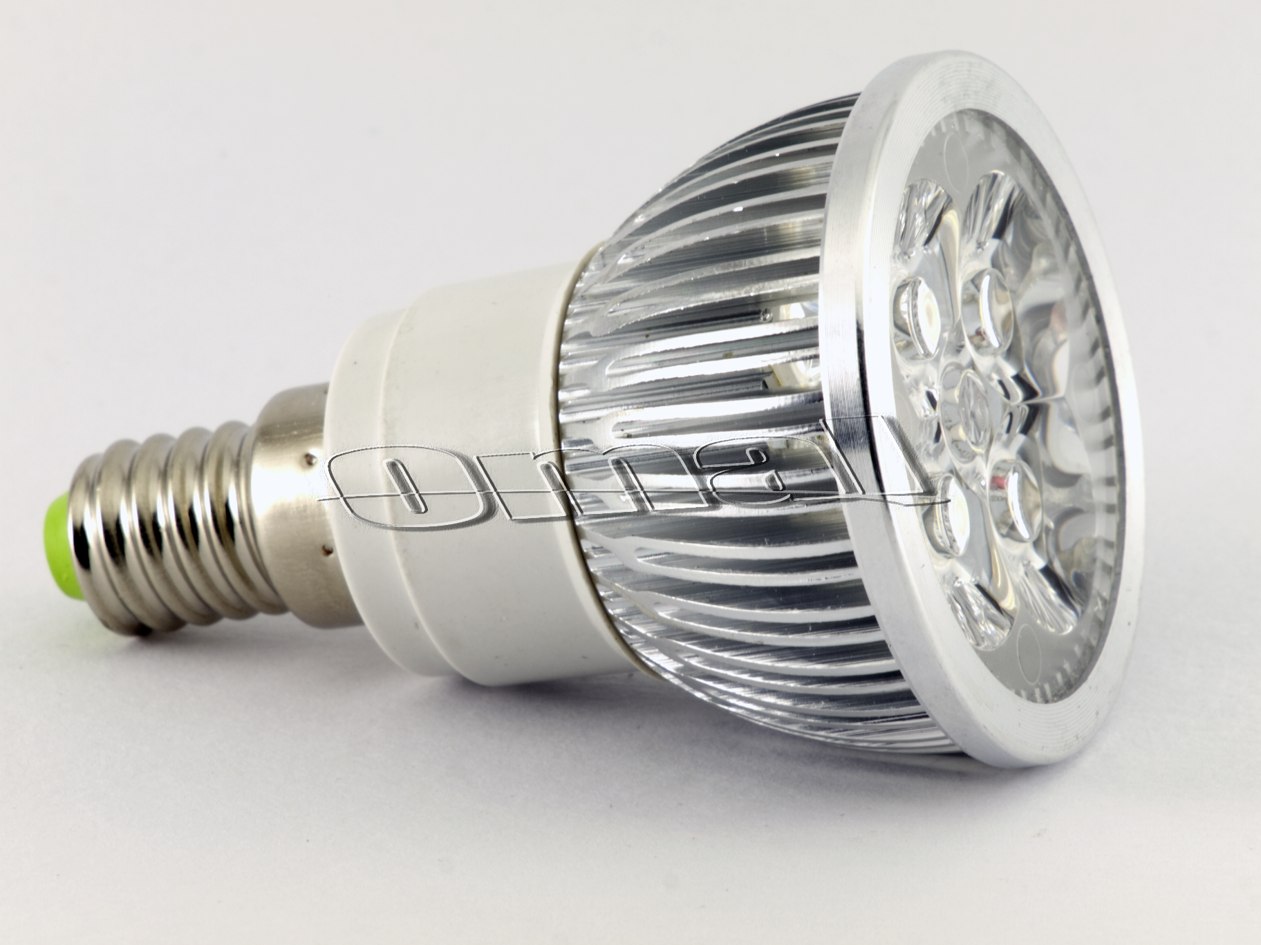LED úsporná halogenová žárovka na 230V se závitem E14, která nahrazuje klasickou halogenovou žárovku .